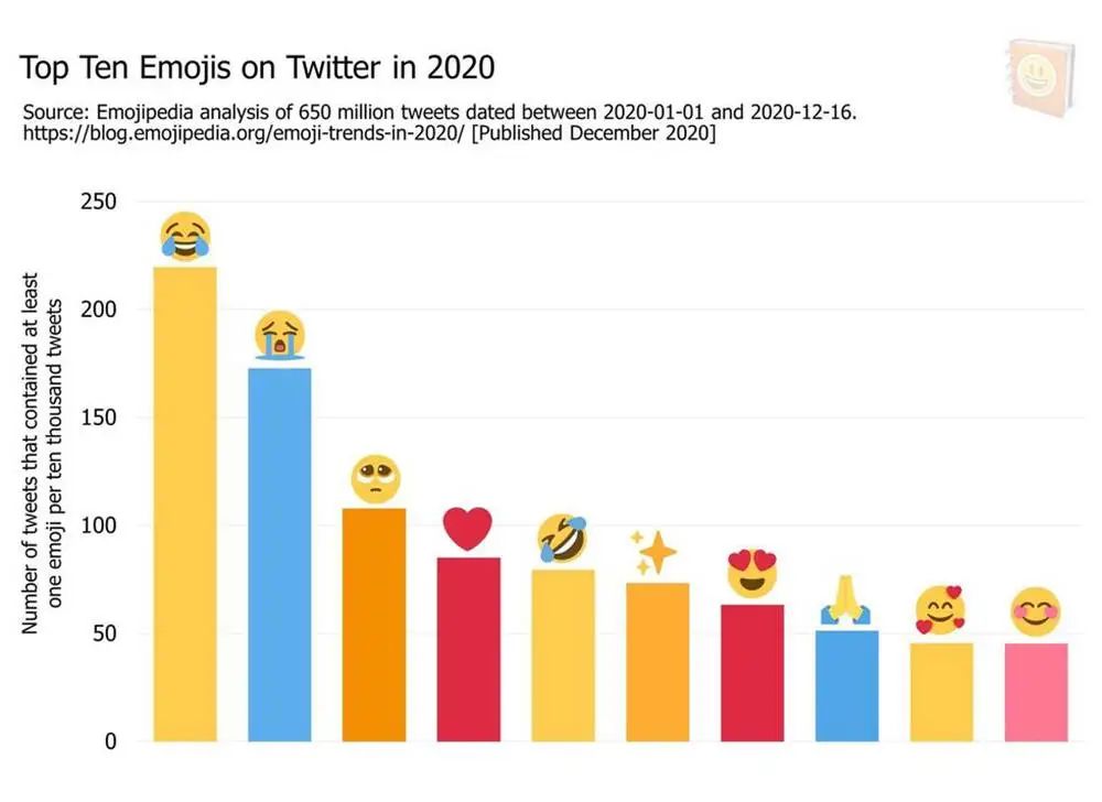▲twitter 上最常使用 emoji 排行榜。图片来自:emojipedia