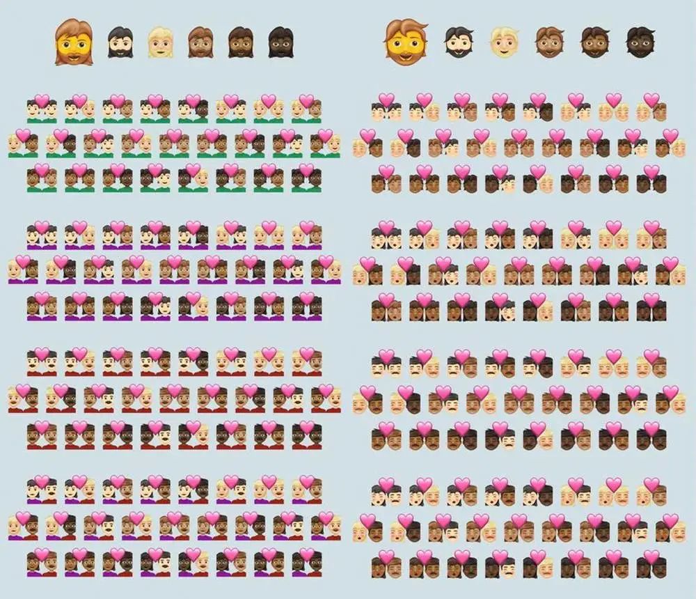 曾经有 21000 人 在一份呼吁「加入红发表情」的请愿上签名,最终得到官方通过。emoji 表情最近的版本更新,也让跨肤色、跨性别的伴侣有了他们 / 她们的专属标识。