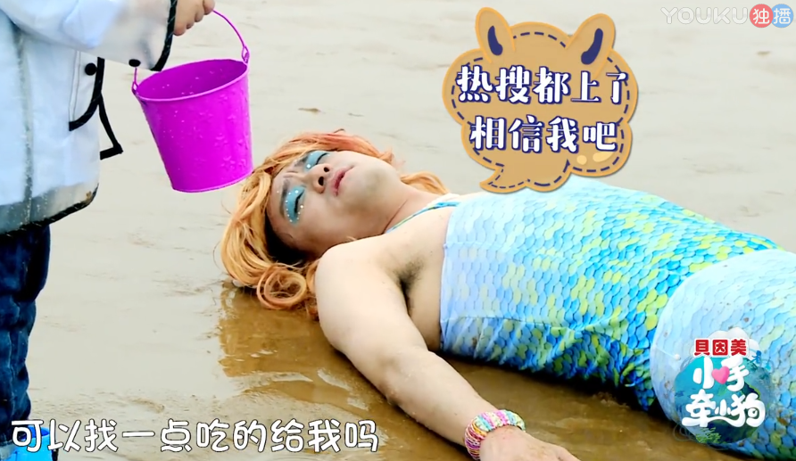 在《小手牵小狗》中每个孩子都有风趣的一面,每期都让观众笑到不行,当然这期也不例外!在剧中赵英俊收到节目组的任务扮演一位美丽的“美人鱼”!自认为演技还好的赵英俊在饰演美人鱼时也是被叶梓凌这位小朋友看到破绽,并且被怼到不行啊!在节目中扮演一个受伤的人鱼,需要熊孩子们用海水浇水到自己尾巴上,并且还要狗狗们喂养的食物,不然就会面临死亡!一开场就给观众们一个惊讶,这个美人鱼简直了.....