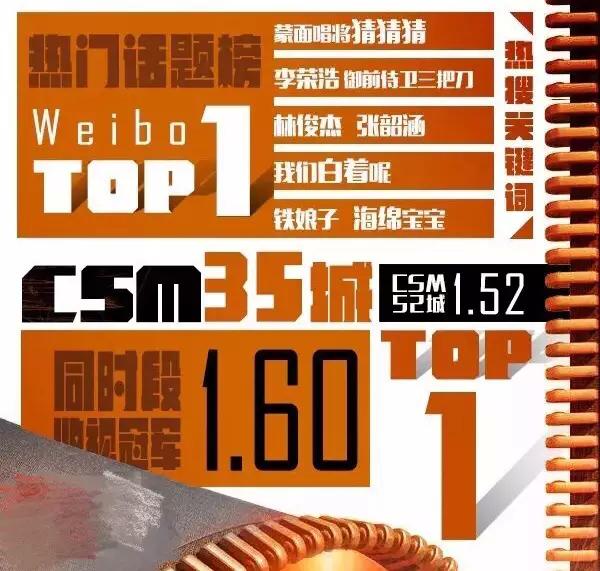 近日,去年收视最终破2的现象级音乐节目《蒙面唱将猜猜猜》第二季强势回归,首播当晚一举拿下csm52城1.522%,csm35城1.60%的亮眼收视,夺得当晚全国卫视所有综艺节目收视冠军。