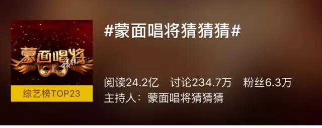 相较于第一季节目的“慢热”第二季一开播就迅速抢占观众眼球。节目播出仅两期,网络播放量已突破2.5亿,#蒙面唱将猜猜猜#话题阅读量超24亿,同时相关热门词条也曾获得话题榜第一。