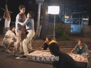 拍摔倒的戏份,他把软垫让出来给陈乔恩,自己一把摔在地上。