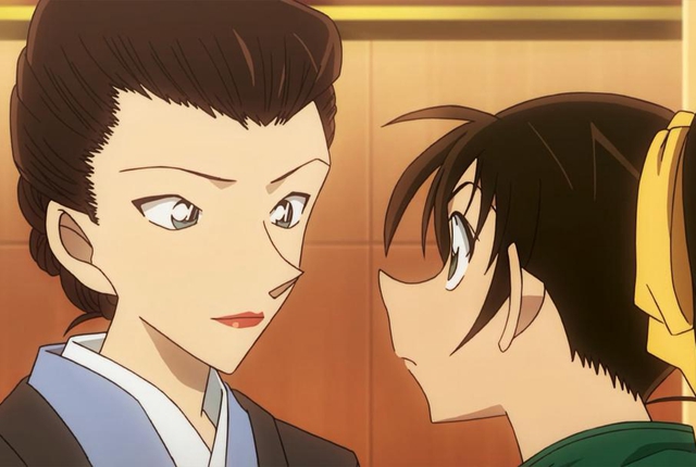 不过这些都仅仅只是表面现象而已,相信大家也都能猜得出来,红叶所谓“未婚妻”云云,只是噱头而已。其实m21里,感觉最大的情感突破,倒是服部静华完全默认并接受了和叶作为未过门的儿媳妇这一设定了。因为红叶的出现,和叶对平次的主动和爱意,除了平次之外。