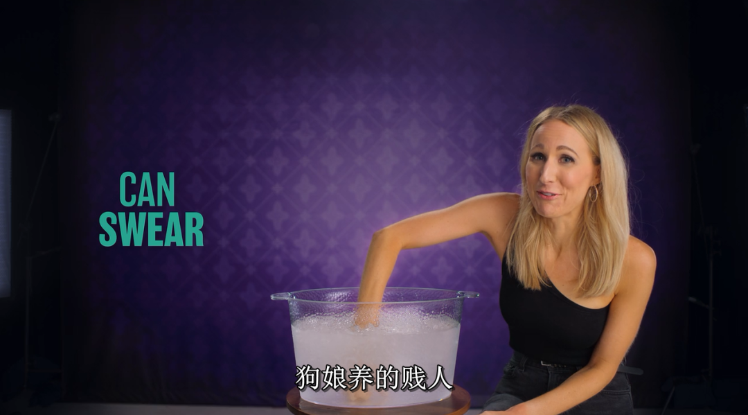 两组嘉宾都得把自己的手伸入冰水中,只有说脏话组可以骂人。