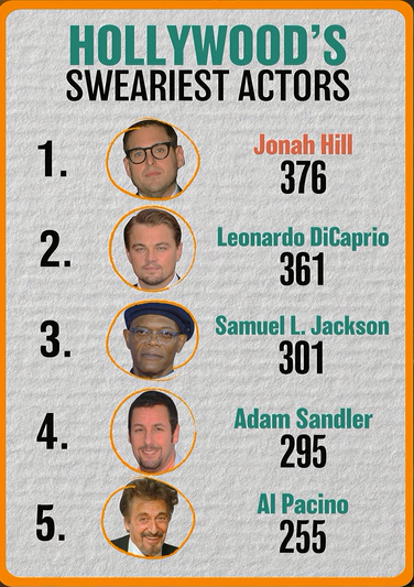 去年buzz bingo网对3500部好莱坞电影做了个脏话统计。