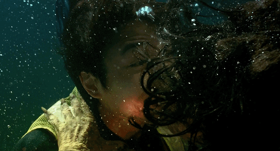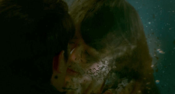 扑街仔于是跳入河中和僵尸抢手机,没想到,这时女僵尸竟然一口把扑街仔咬住了,吸了扑街仔的阳气。