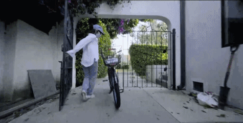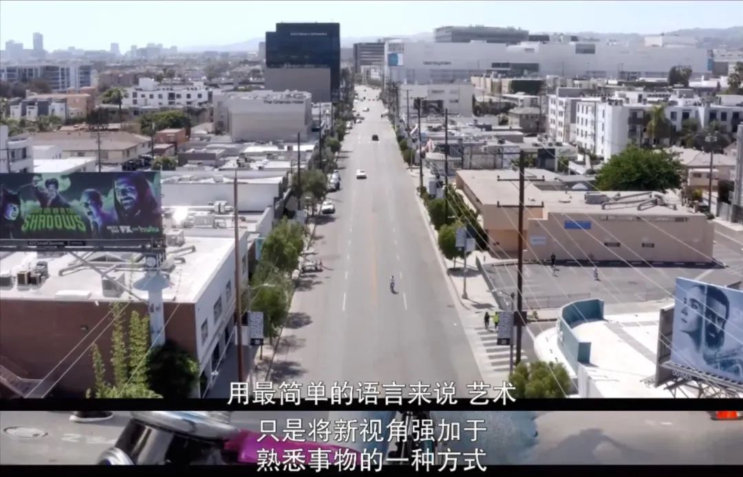 她在空荡荡的洛杉矶街道骑自行车闲逛,配合着冷静的旁白。