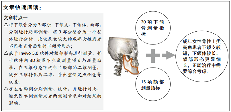 关键词: 成年女性, 垂直骨面型, 锥形束ct, 下颌骨, 骨性Ⅰ类