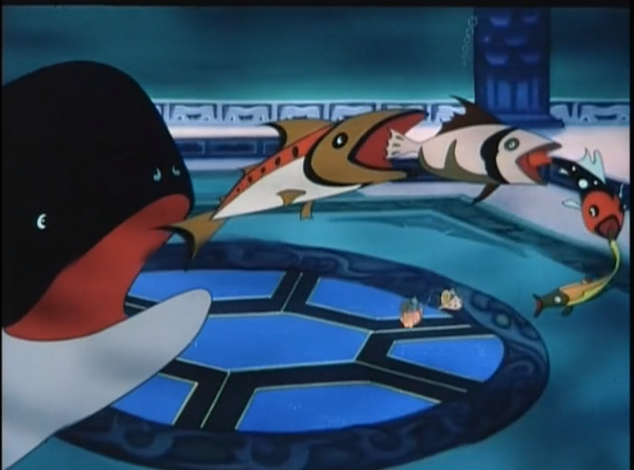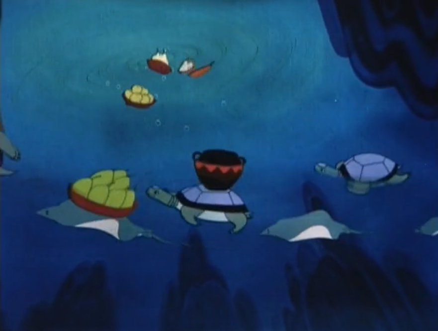 想象力体现最深的地方就是龙宫里的那些“反派角色”们,比如这些担当运输功能的乌龟和蝠鲼们就让人眼前一亮。