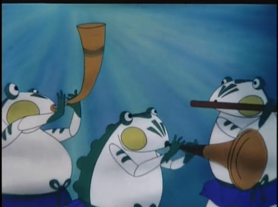 大肚子、肺活量大的青蛙担任吹鼓手。