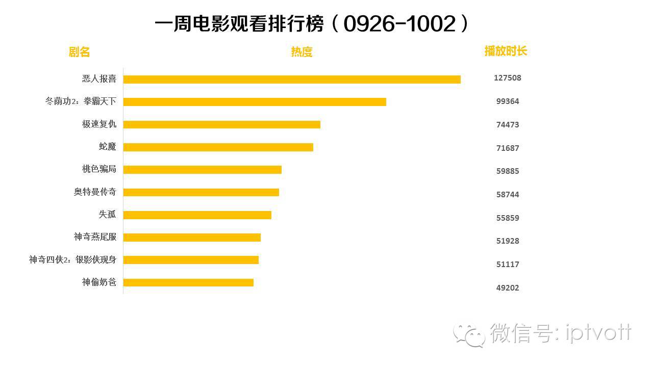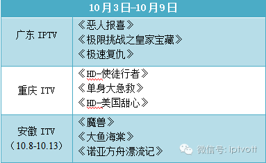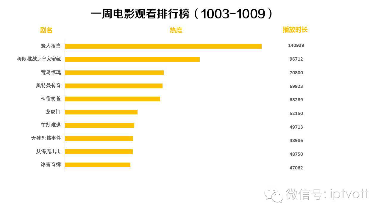 本周三家电影榜的前三甲内容各不相同,无任何重叠,这也足以说明各地观众的口味南辕北辙。广东iptv电影榜单前三依次是《恶人报喜》《极限挑战之皇家宝藏》《极速复仇》;重庆itv电影榜单的冠亚季军分别为《hd-使徒行者》《单身大急救》《hd-美国甜心》;《魔兽》《大鱼海棠》《诺亚方舟漂流记》排在安徽itv榜单的前三位。