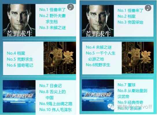 纪实周榜:本周纪实榜内容上的变化较于上周而言较为显著,有六档新节目入榜。《怪兽来了》本周排名无变化,稳居第一,新入榜的《野外夫妻求生档》摘得本周亚军之位,《未解之谜》本周排名小幅度上升,由上周第四升至本周第三。上周榜单亚军《档案》本周名次滑至第五,本周榜单第六《猎奇笔记》、第七《日食记》以及第八《舌尖上的中国》均为新入榜节目,本周榜单的第九与第十也都是新入榜内容,分别是《海上丝绸之路》与《伟人毛泽东》,因为本周恰逢国庆节,所以毛泽东相关纪实内容上榜也是理所当然的,爱国的小伙伴还是不少滴。另外,在上周榜单中摘得季军之位的《帝国肇始》与第五名的《一千个人生必游之地》本周双双落榜,上周榜单的第七名《寰球》、第八名《从秦始皇到汉武帝》、第九名《经典传奇》以及最后一名《惊实录》本周也均跌出榜单。