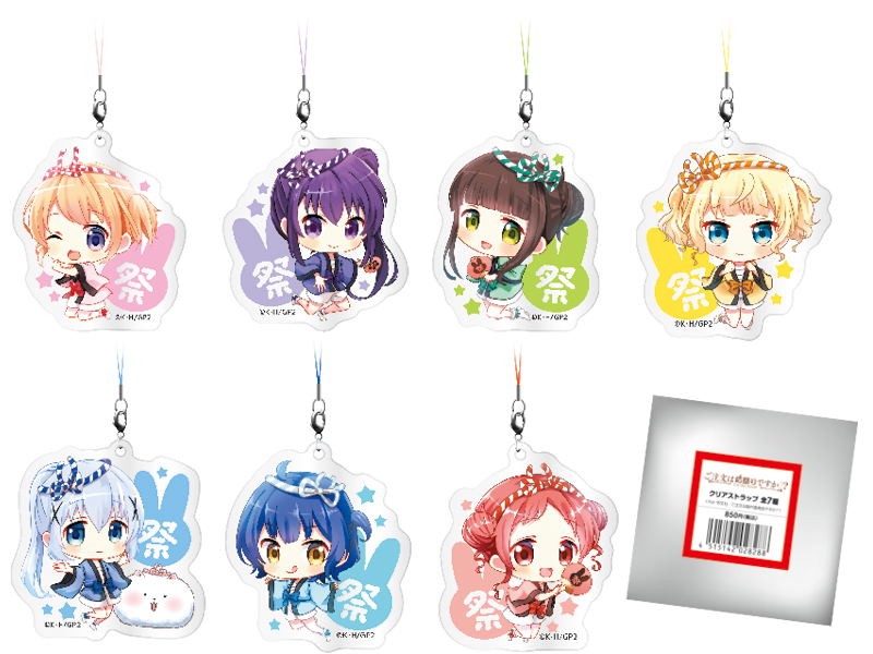 本次推出的周边只有一种,那就是《请问今天要来点兔子吗?》神田祭服装的q版手机链,共7种,只在东京神田明神神社附近的4家罗森便利店贩卖,每个售价850日元。