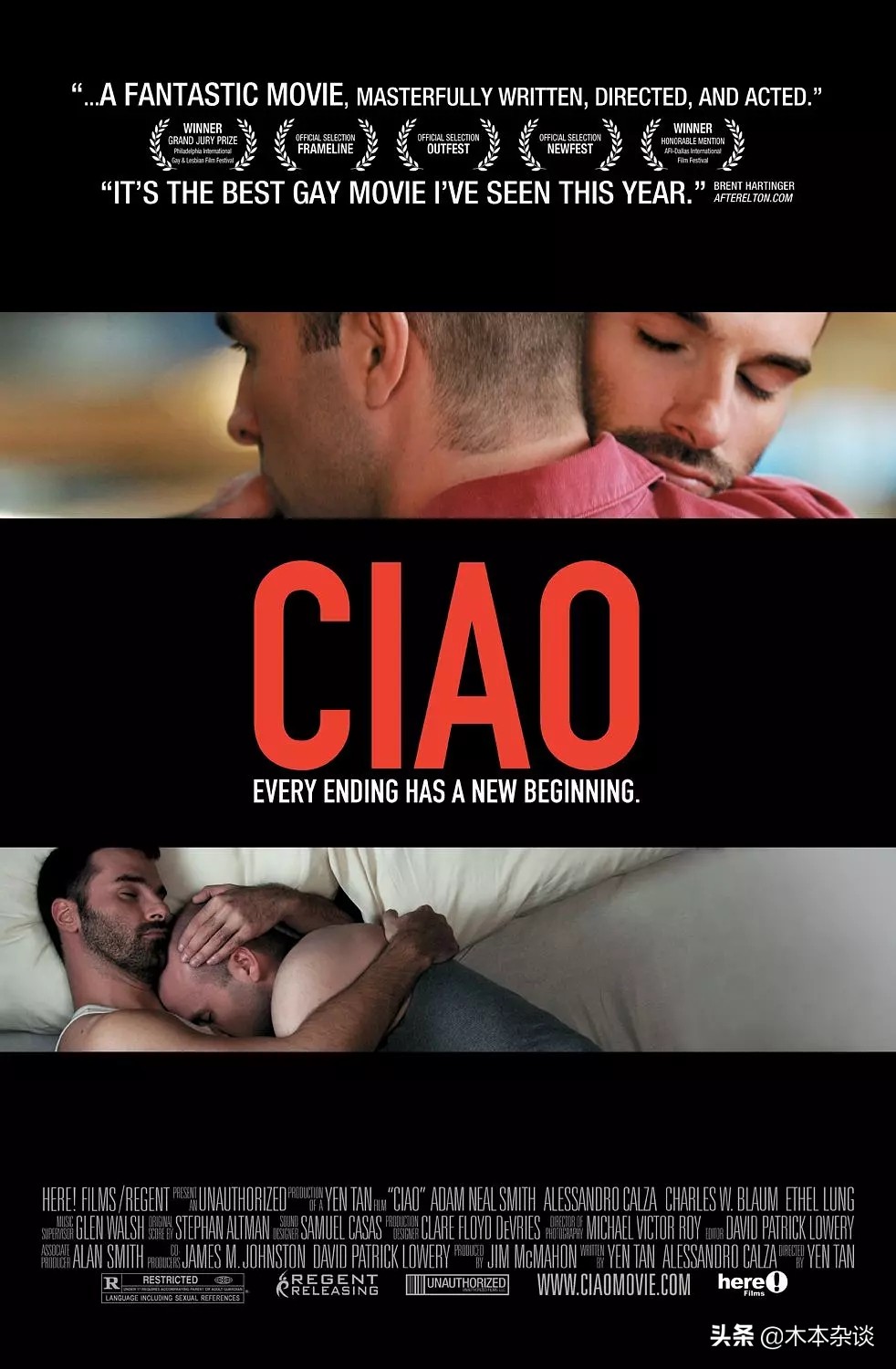 “ciao”在意大利语里既是“你好”也是“再见”的意思。一个悠长的故事在ciao中开始,在ciao中结束,引发了人们强烈的共鸣。生与死,性与爱,得到与失去,就像绵绵的细雨落在全世界的草坪,打湿一颗颗柔软的心。