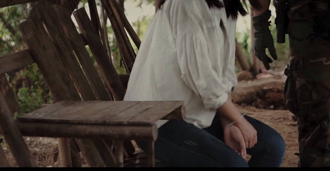 下图中,雇佣兵救出了人质,这位黑老大的女儿脾气很大,一路上不服从雇佣兵的指挥。雇佣兵也不是吃素的,找了一段尼龙捆扎带,这种东西在很多大片中都用过,用来拘束犯人的双手,只是这部剧中的也太细了。这个规格的捆扎带,还需要用刀子划开嘛,女主就算瘦弱,手腕一用力,也就开了。笔者担心在护送的路上,女主一个不小心,无意间就挣脱了这条细若游丝的“束缚带”。