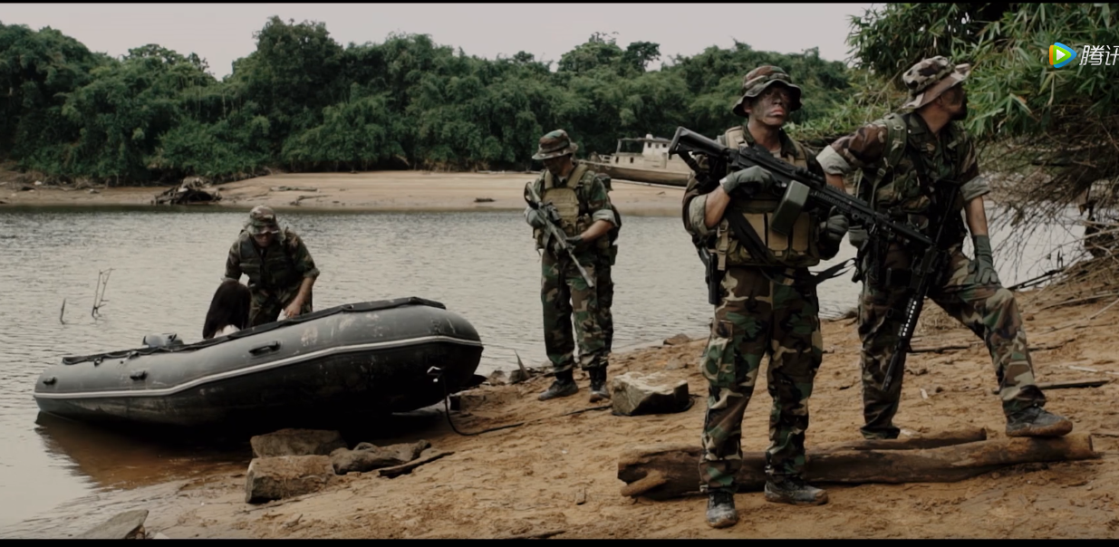 剩下的情节的逻辑更混乱,按照普通电视剧的逻辑,黑老大身边应该有保镖吧,可这位老大身边什么人都没有,除了他的媳妇,剩下的就是那个为他和雇佣兵牵线的外国人。这里的这个情节,笔者看到了《战狼二》的影子,两个雇佣兵看上去都十分嚣张,只是那个比这个有本事的多。而剩下的那群雇佣兵更像是散兵游勇,从武器到穿着都乱七八糟,这些人更像一群民兵,是不是特种兵扮相的衣服不够用,只好找一下普通的衣服代替。
