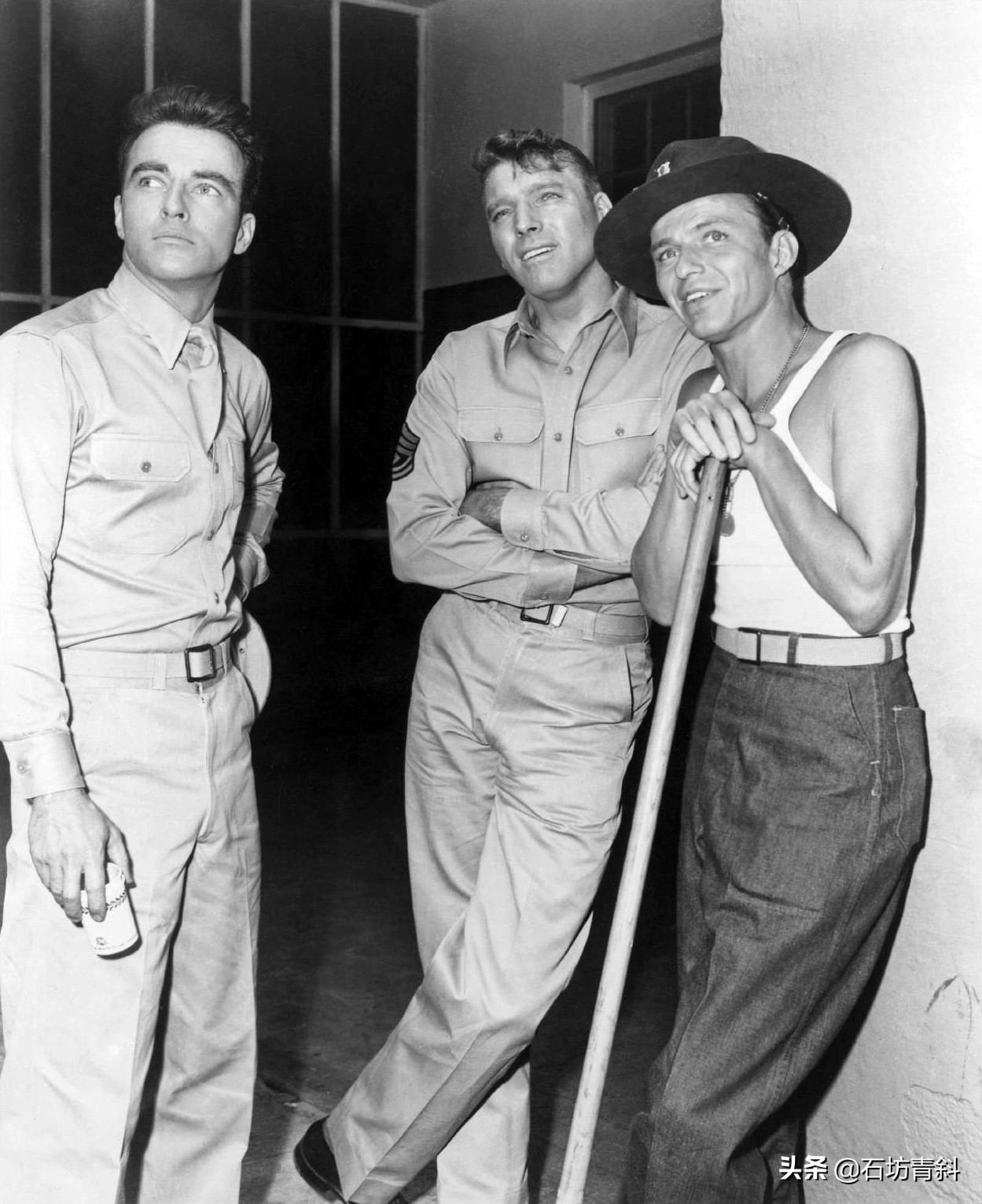 电影《乱世忠魂/红粉佳人from here to eternity》(1953)宣传照,从左至右:蒙哥马利·克里夫特montgomery clift伯特·兰卡斯特burt lancaster弗兰克·辛纳特拉frank sinatra