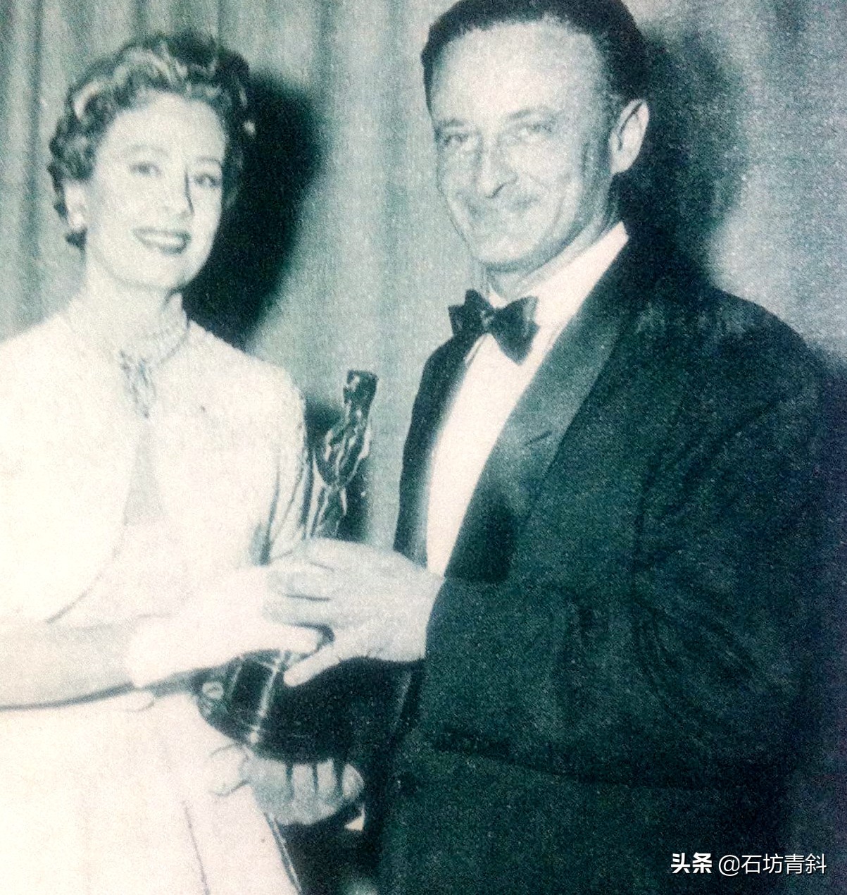 导演弗雷德·金尼曼fred zinnemann(右)凭借电影《乱世忠魂/红粉佳人from here to eternity》(1953)获得第26届奥斯卡金像奖最佳导演奖,这是他和颁奖人艾琳·邓恩irene dunne合影