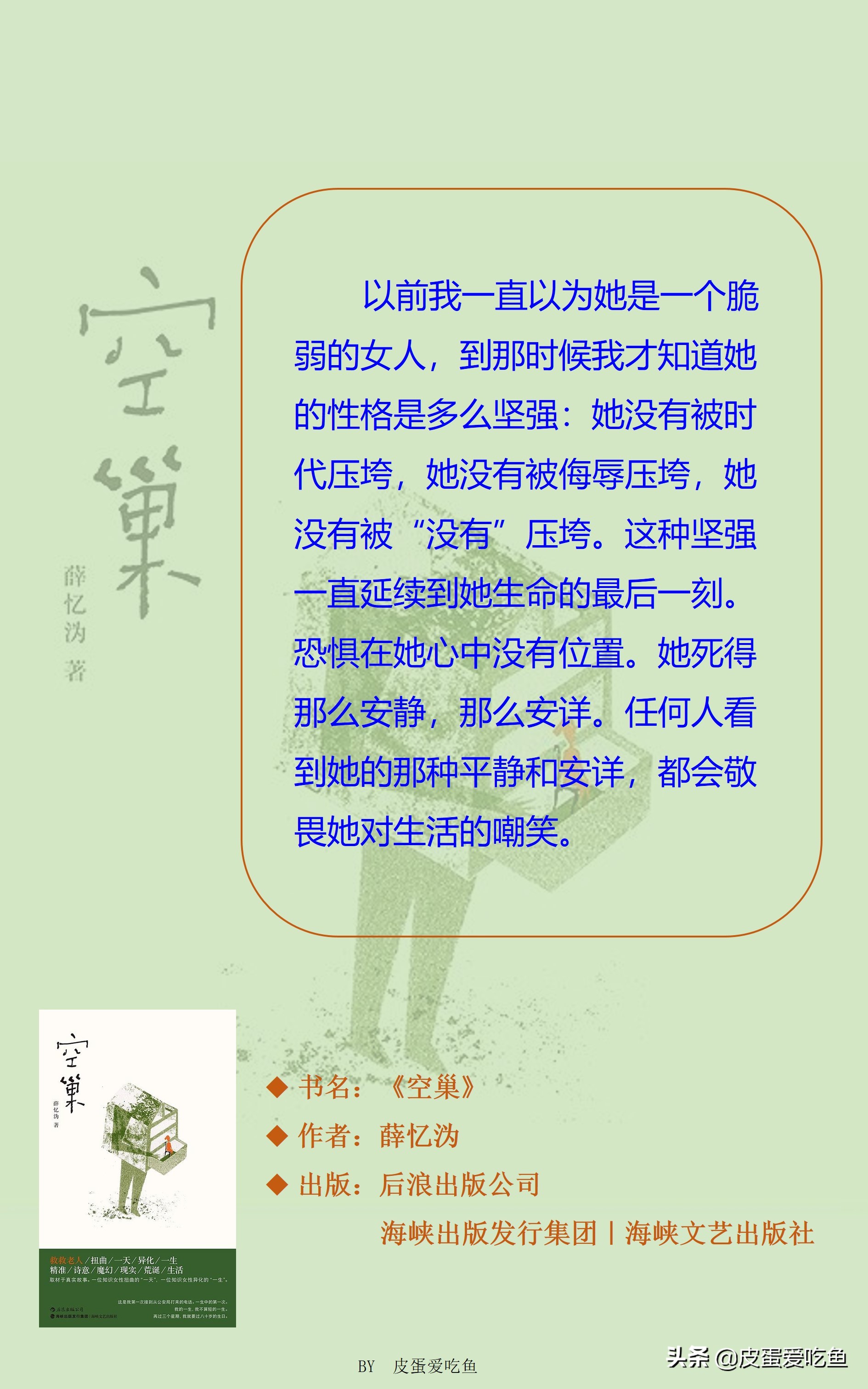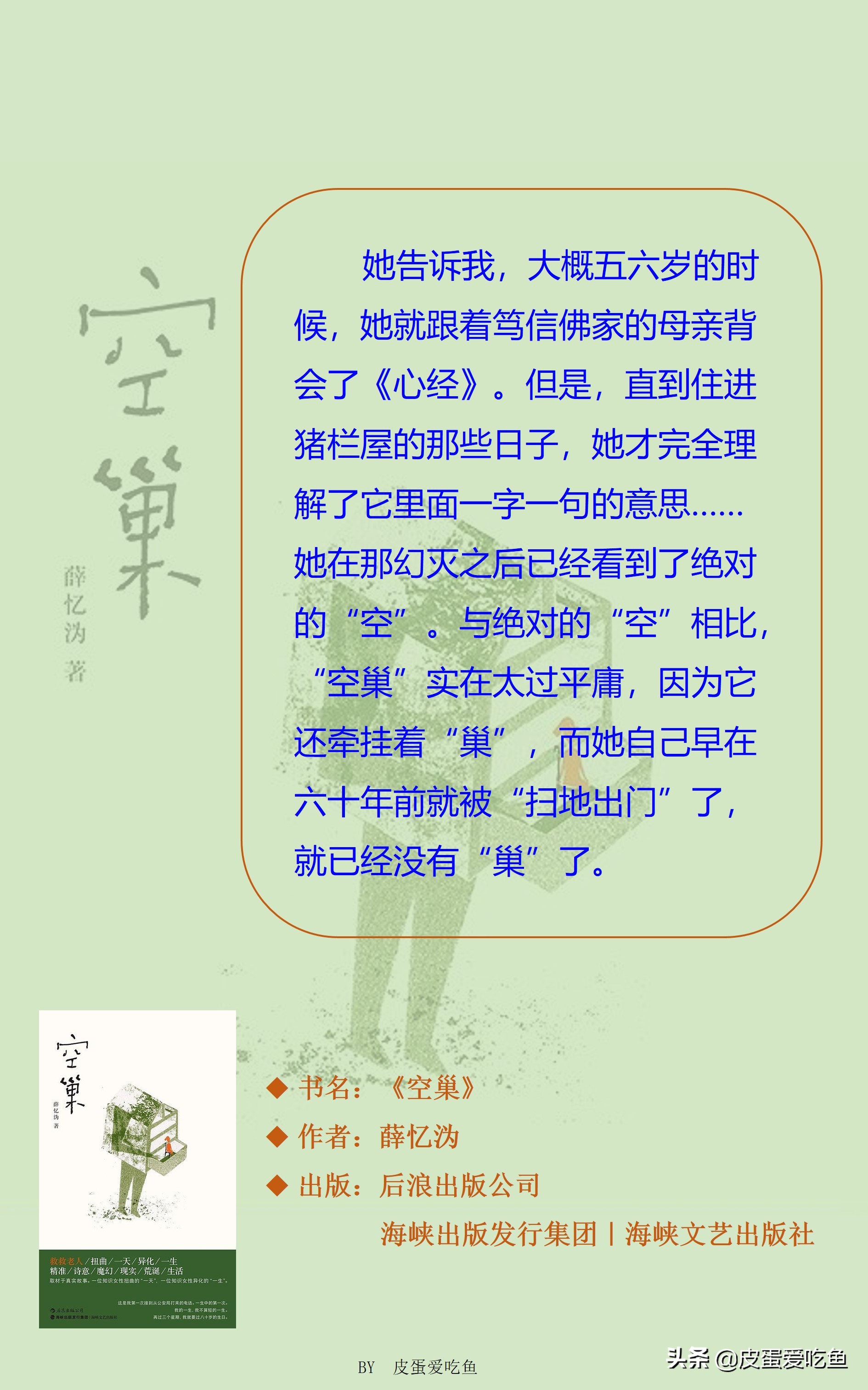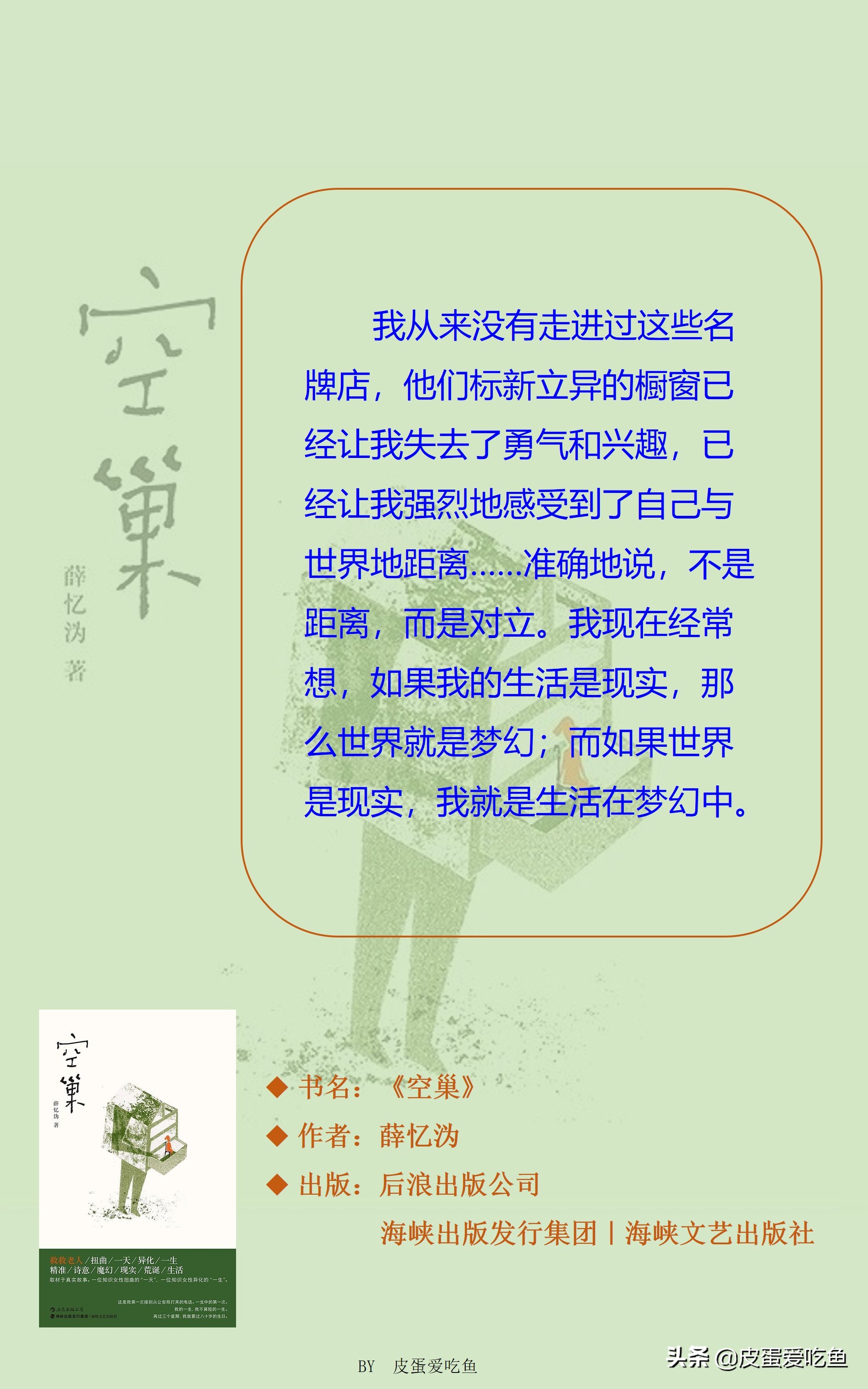 薛忆沩被人称为“作家中的哲学家”,他的作品以富含哲理见长,《空巢》当然也不例外。