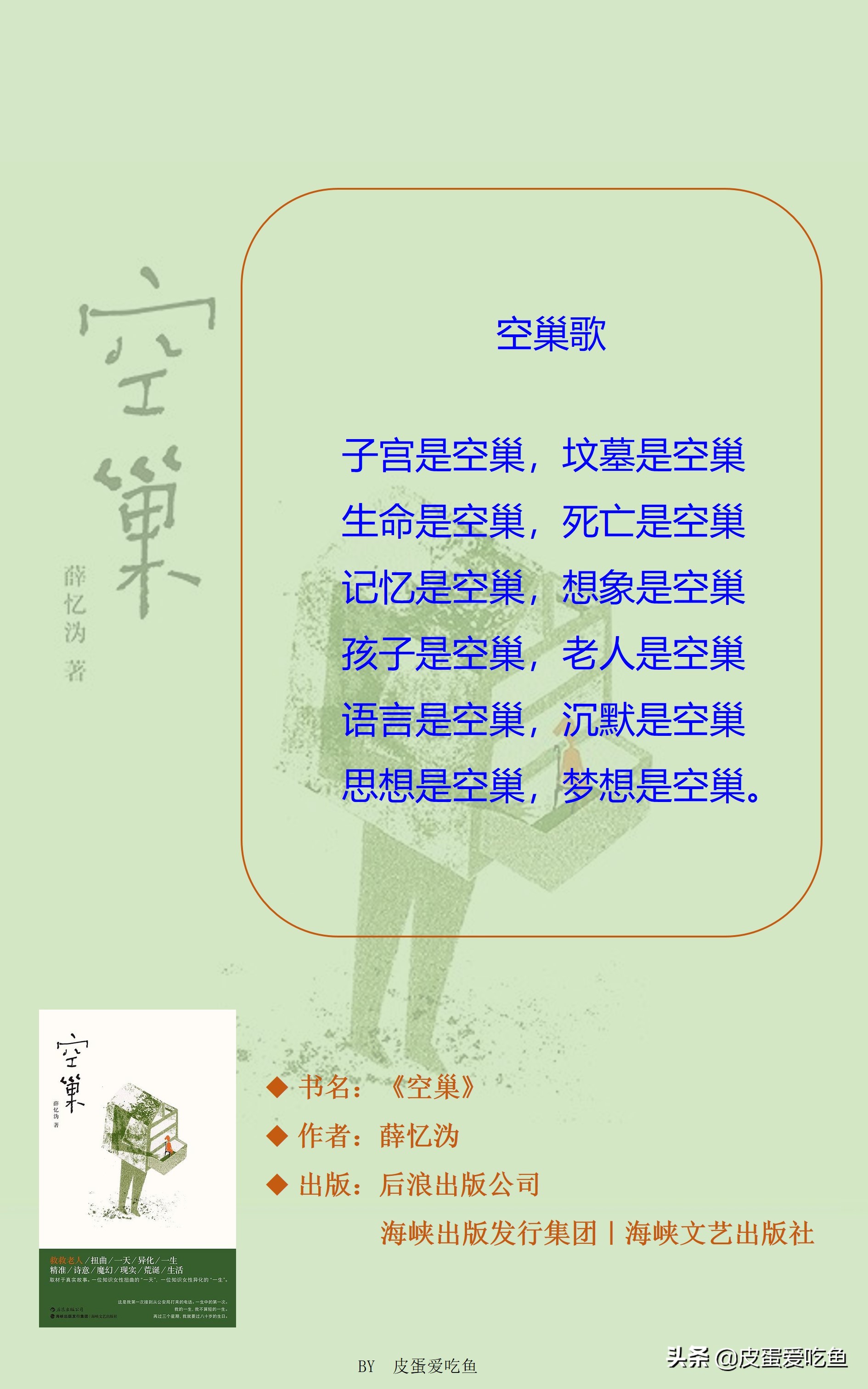 “子宫是空巢,坟墓是空巢/生命是空巢,死亡是空巢/记忆是空巢,想象是空巢/孩子是空巢,老人是空巢/语言是空巢,沉默是空巢/思想是空巢,梦想是空巢。”