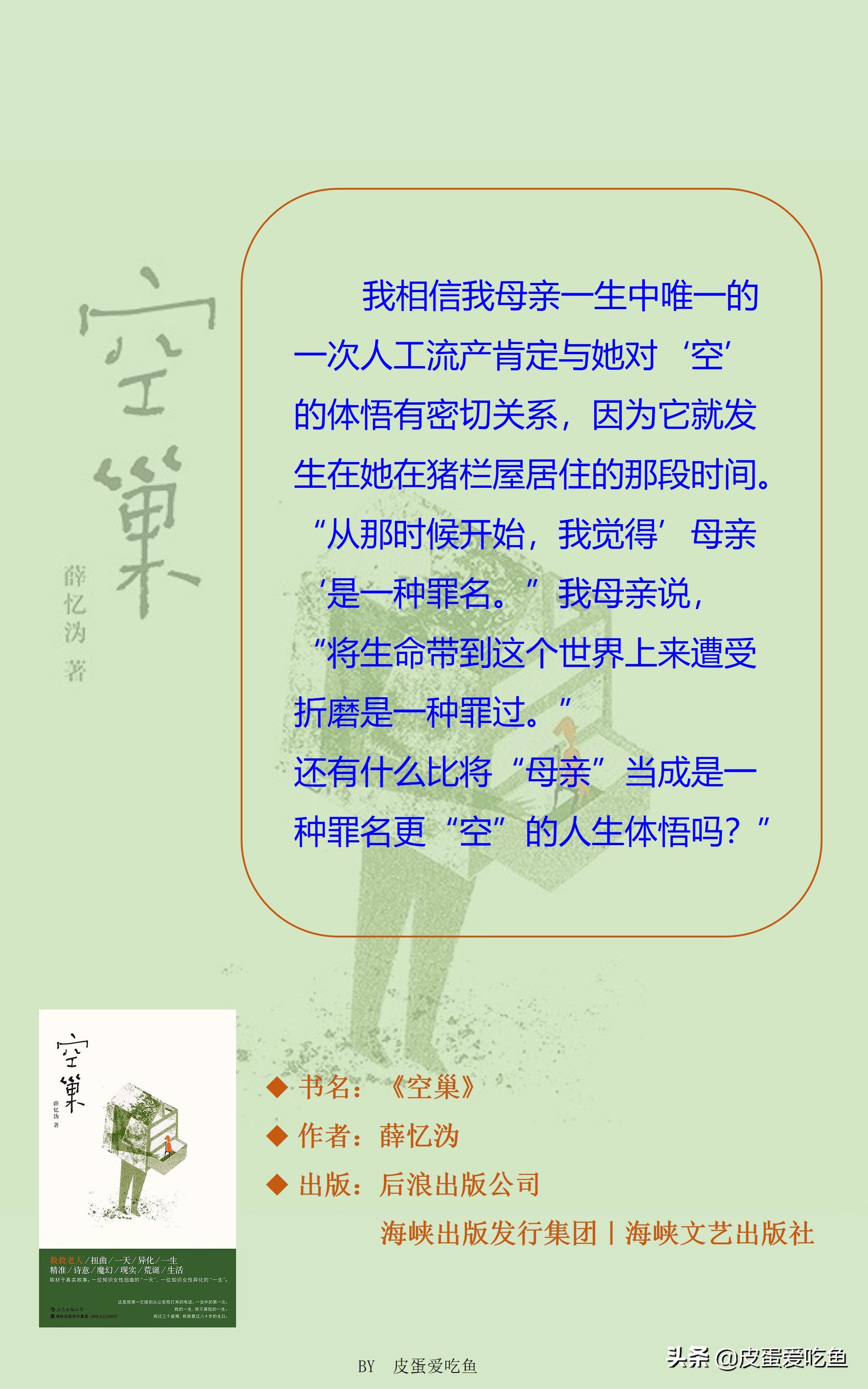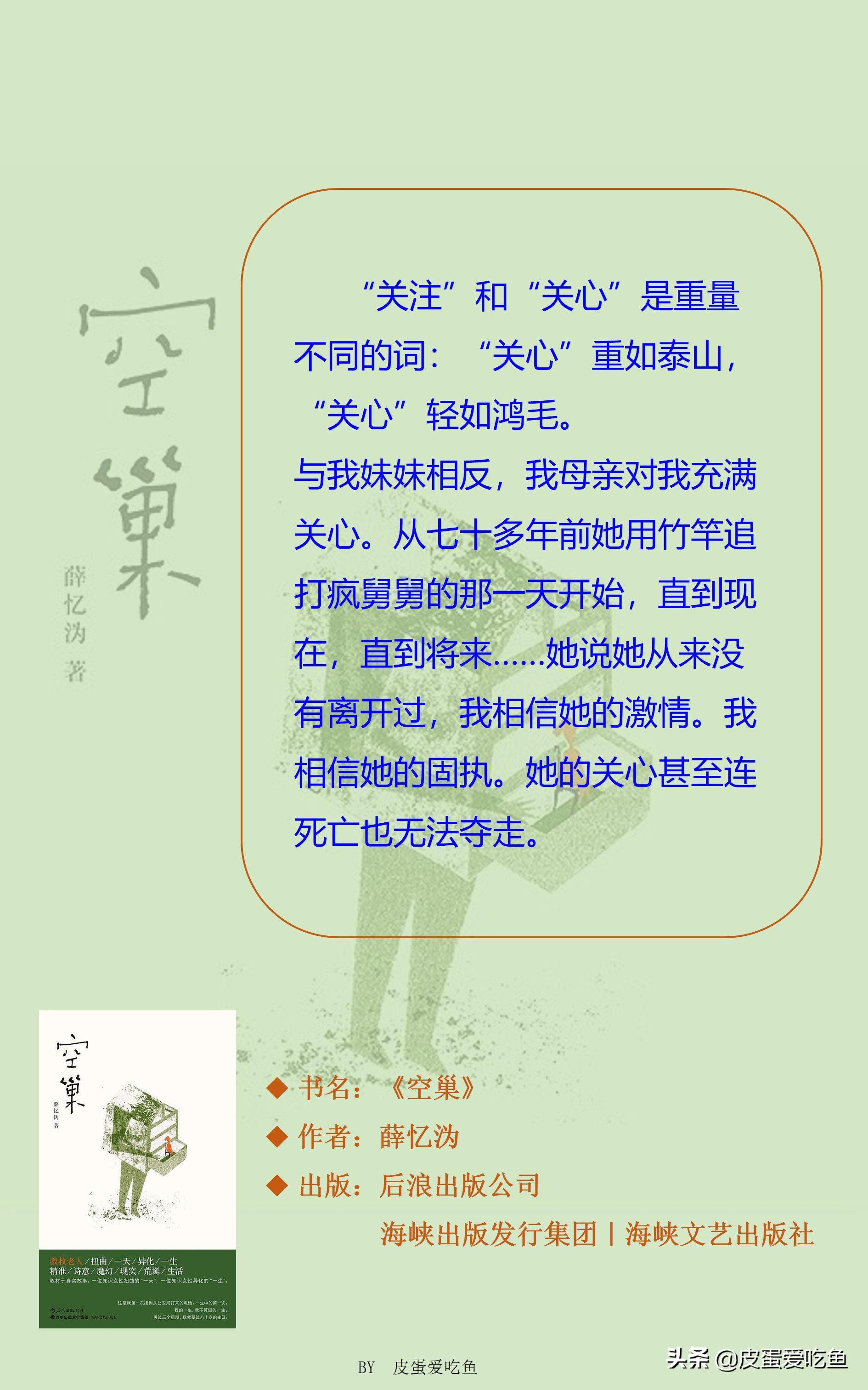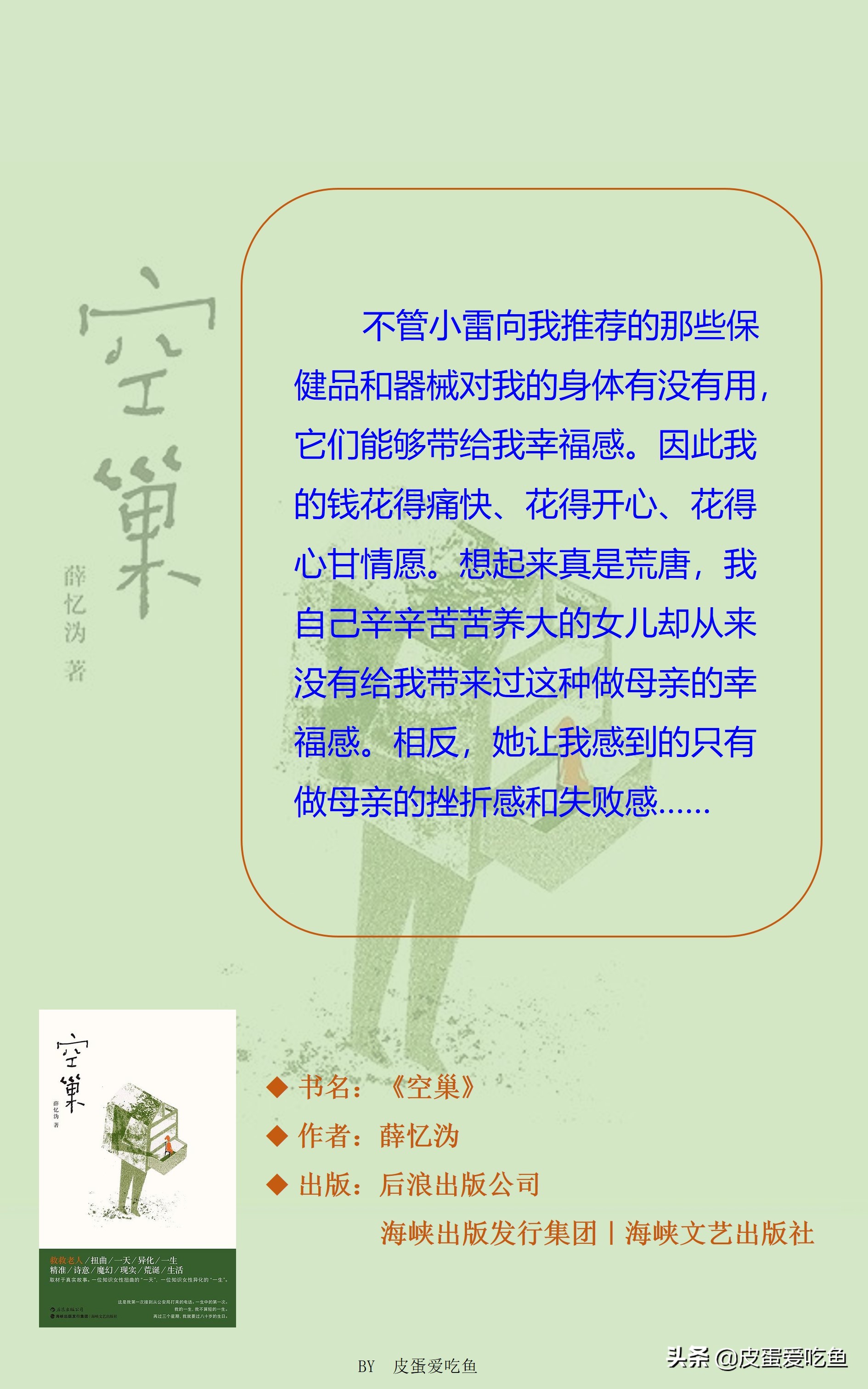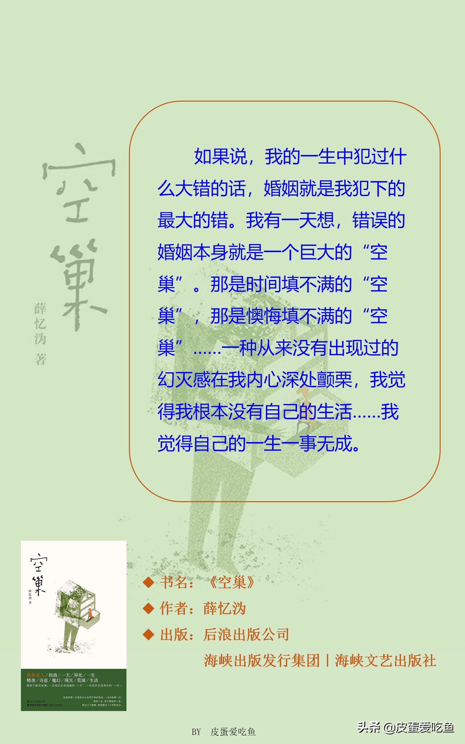 “错误的婚姻本身就是一个巨大的‘空巢’。那是时间填不满的‘空巢’,那是懊悔填不满的‘空巢’……”