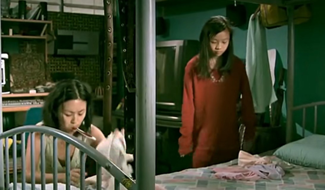两张床并在一起,中间用一张帘子隔开,一边是自己的亲生女儿,一边是自己的男朋友。碧琪却死不承认阿强性侵的事实。