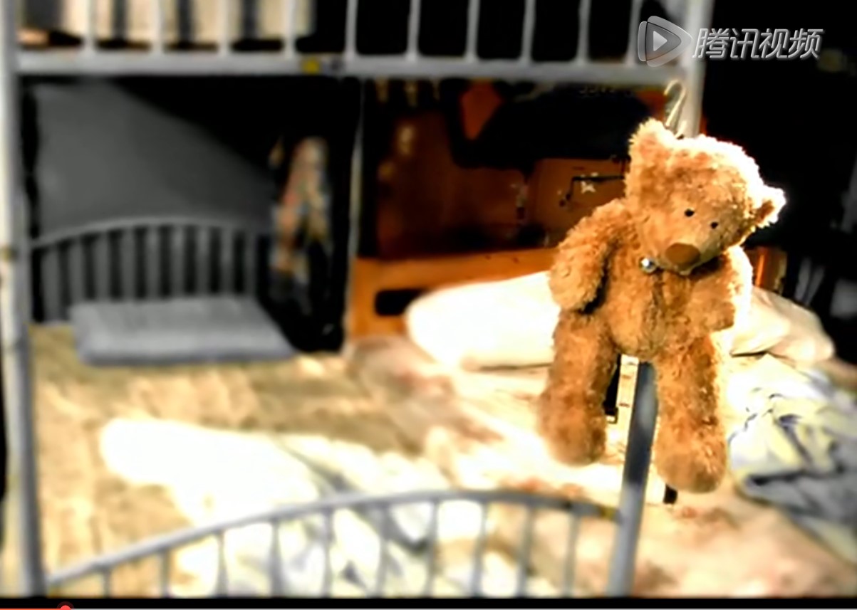穿着红衣服的小女孩不停的砸着手里又破又旧的毛绒玩具,随着一句: