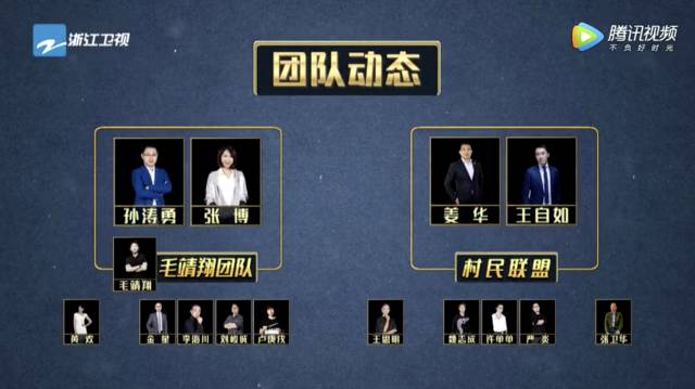 首先是姜华、王自如形成村民铁盟。其次,张博、孙涛勇作为候选人力挺另一位候选人毛靖翔。所以很快便形成了两个团队,即毛靖翔的竞选团队和一个村民联盟。