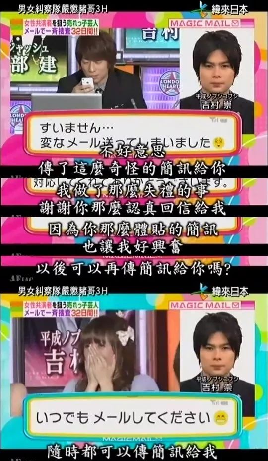 首先是在电视台以合作拍摄虚构的节目为契机认识,交换联系方式后,小淳就会以女方名义,发去短信。