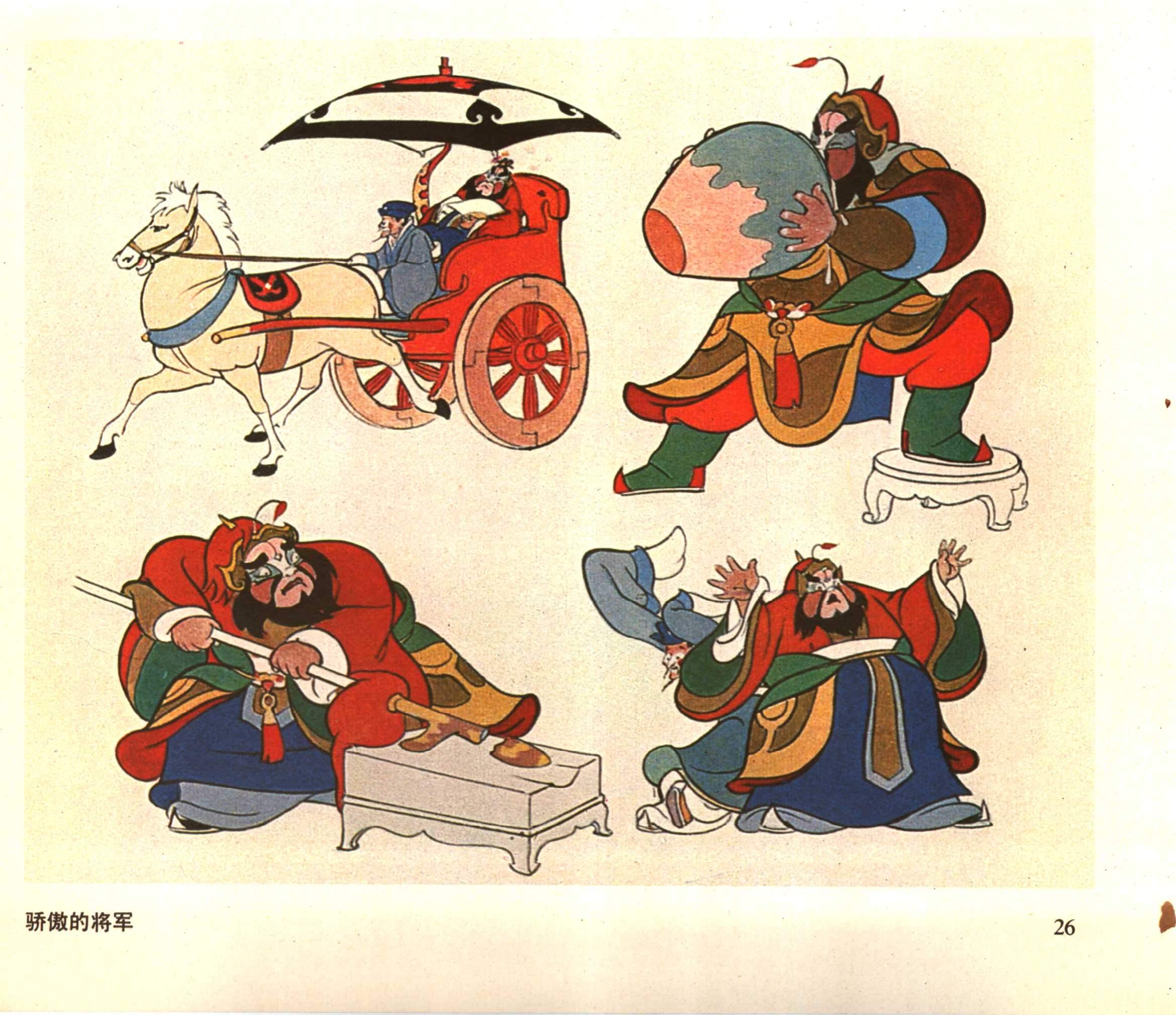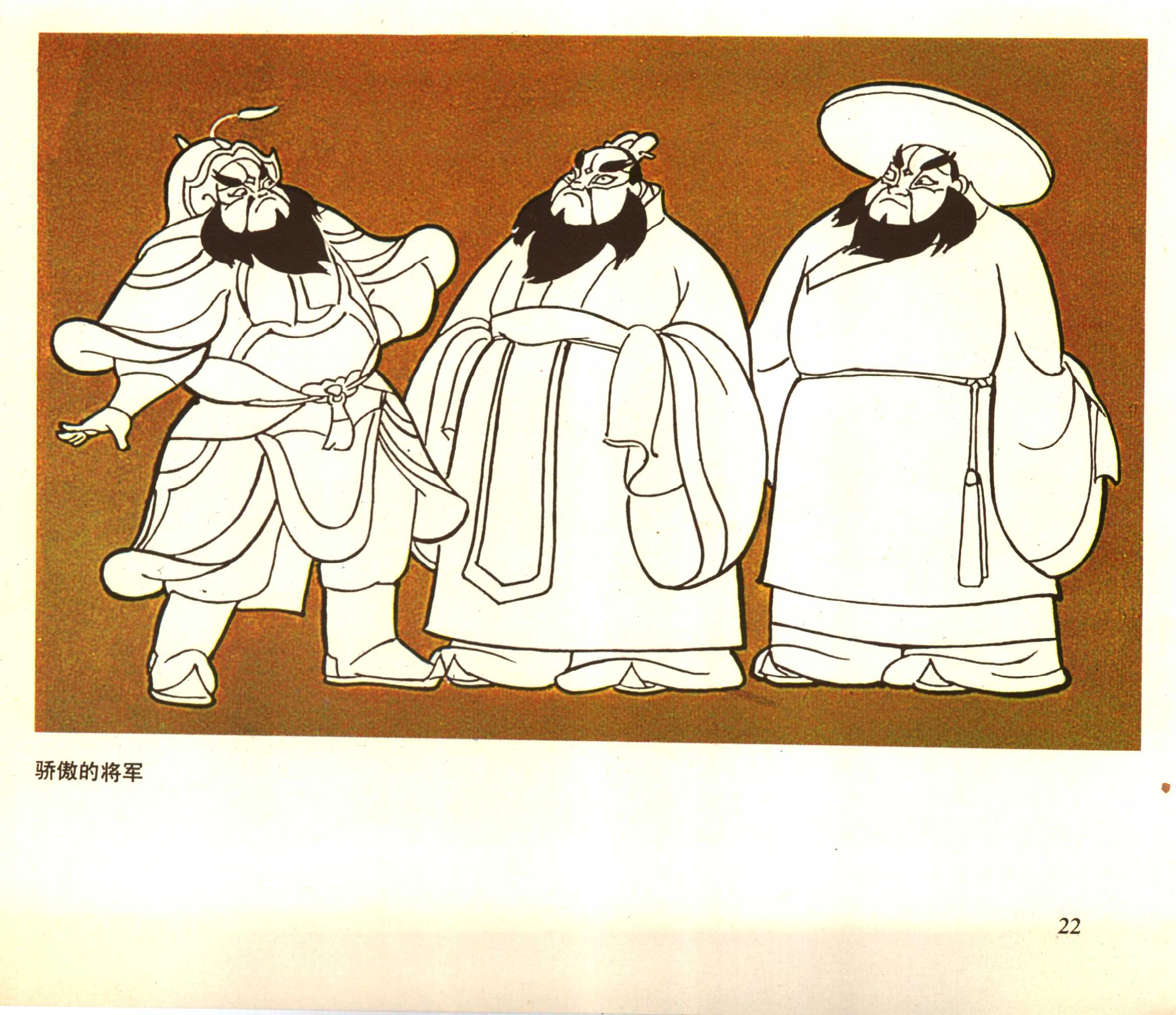 《骄傲的将军》的编剧是大名鼎鼎的漫画家华君武,导演是特伟和李克弱。 1955年春成立该片摄制组。艺术家们为了“探民族形式之路,敲喜剧风格之门”,借鉴京剧脸谱艺术,远赴北京、山东、河北等地搜集大量古代绘画,雕塑,建筑等资料,经过一年多时间的辛勤工作,到1956年才完成这部二十多分钟的动画片。