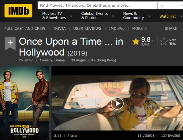 ▲《好莱坞往事》还没上映就在imdb上获得9.8高分