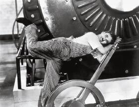《城市之光》充分显示了卓别林笑中带泪的喜剧风格,讽刺中有脉脉温情流淌,流浪汉与卖花女感情的含蓄结局曾让许多人不禁泪光闪闪。当经济大萧条袭来,眼见普通平民所遭遇的失业贫困等悲惨境遇,触动着卓别林的心弦,于是有了《摩登时代》。影片直指机器大工业对人的异化和压榨,人被当作了庞大机器上的螺丝钉,日日重复着机械的工作,以致夏尔洛神经变得不太正常,见到螺帽一样的东西就冲上去拧,令人捧腹的喜剧背后也鲜明反映了卓别林对美国社会失业问题的态度。这部电影后来被fbi视为卓别林是共产主义者的证据之一。