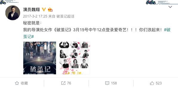 做过团队里的表演老师,也常常兼职复排话剧导演,2017年还自导自演过一部网络情景喜剧《破茧记》。