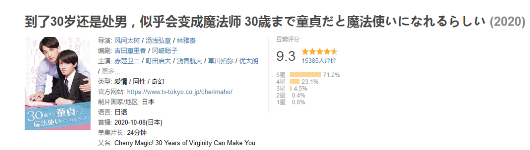 《30岁还是处男》改编自日本同名人气漫画《到了30岁还是童贞的话,好像就会变成魔法使》。