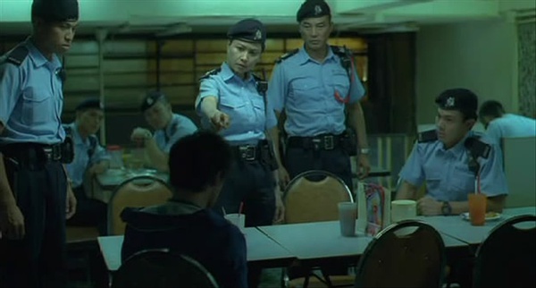 而后面的剧情也是以这种情比金坚的感情作为前提条件的,也是最让人不齿的,流氓利用盲辉那就算了,结果连警察也一样玩弄这条可怜虫,他的生存空间极其恶劣,最滑稽的是盲辉被蛊惑仔追杀就马上躲到警察那去,被警察玩弄抛弃后跪到阿乐那里去求情,盲辉的这种矛盾表现就好像一只没头苍蝇那样四处乱撞,让人苦笑之于心生怜悯,但即便是这样,他仍然有活下去的渴望和憧憬,因为他还有心爱的女人,他就象个在风雨中提着残灯的迷路小孩,只要守护着这微弱的灯火,他就能感觉到温暖,就不再害怕。