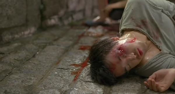 很喜欢象这类关注社会底层弱势群体的电影,把他们的生活状态用这样残酷直白的方式表达出来,我觉得非常贴切,因为他们确确实实就这么活在我们的周围,只是大家都习以为常了,这种习惯甚至麻木到我们觉得他们似乎生来就该这么贫苦、这么低贱,而且人性的邪恶向来都不舍得放过这些可怜虫们,都很乐意在他们身上再踩上几脚、吐两口唾沫,就好像小孩子看到疯婆子总是象找到乐子一样往她头上大义凛然的扔石头,君不见当盲辉躲到楼上跟那个吃面的警察坐一起时,那警察就厌恶的象看到屎一样瞪着他,即使人家没做错任何事,当然也可以随时抓他过来踢打一顿、当炮灰使,其实这已经足够害死盲辉了,他之所以没死是剧情需要。