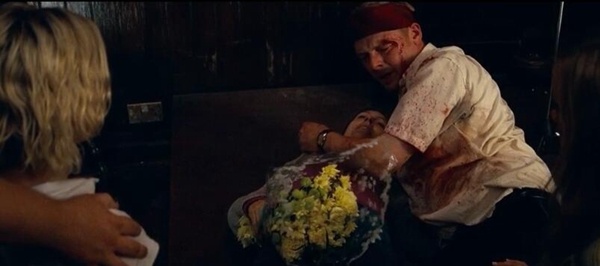 但在摆脱僵尸围攻时,继父不小心被僵尸咬到了脖子,血流不止。飙车片段,惊险刺激,其实这时候赖特导演已经开始利用音乐来搭配飙车环节了。一个《极盗车神》beta版的概念!