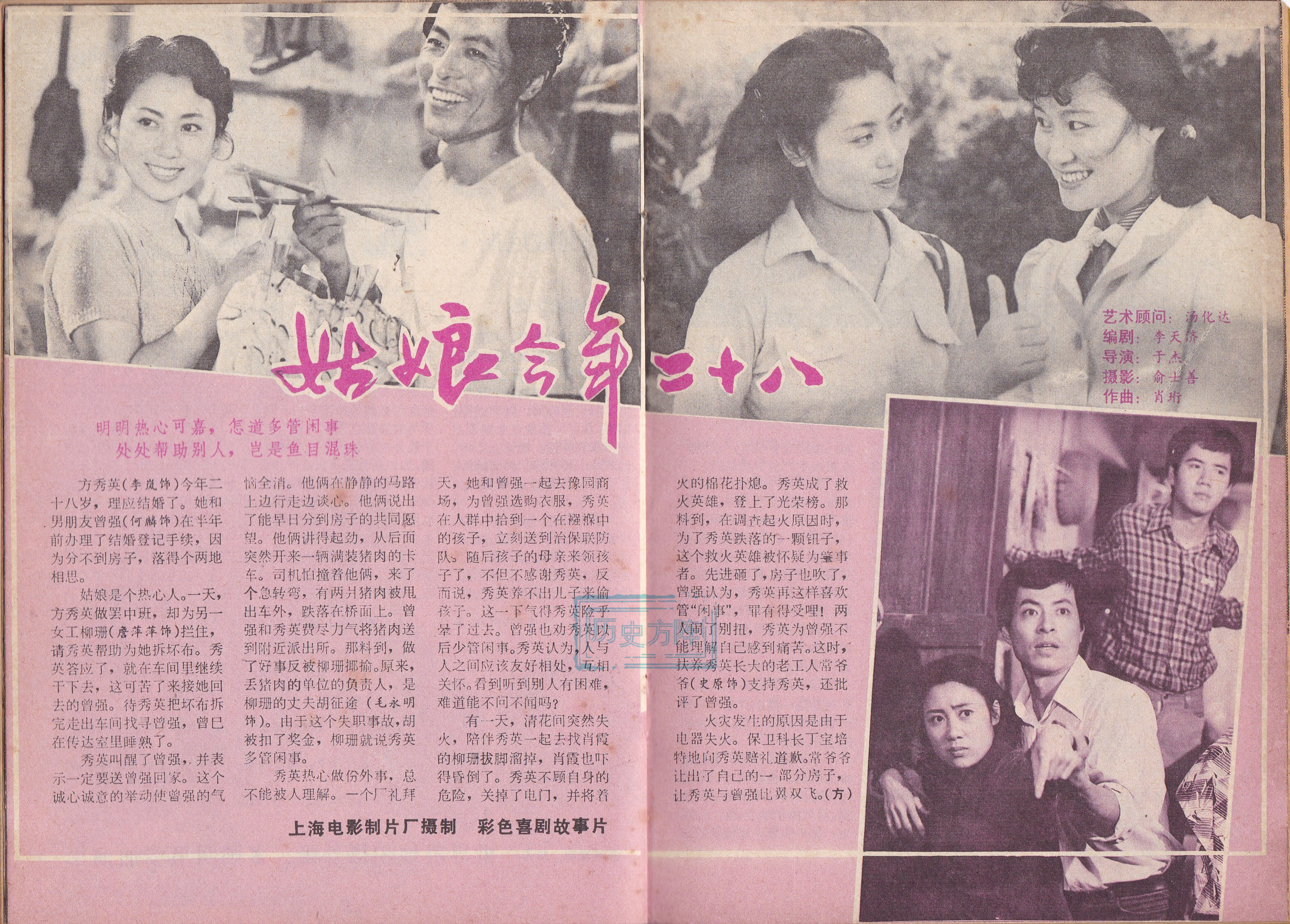 上海电影制片厂彩色故事片《姑娘今年28》,讲述了二十八岁的纺织女工与建筑工人的故事。李岚、詹萍萍、毛永明 、何麟等主演。