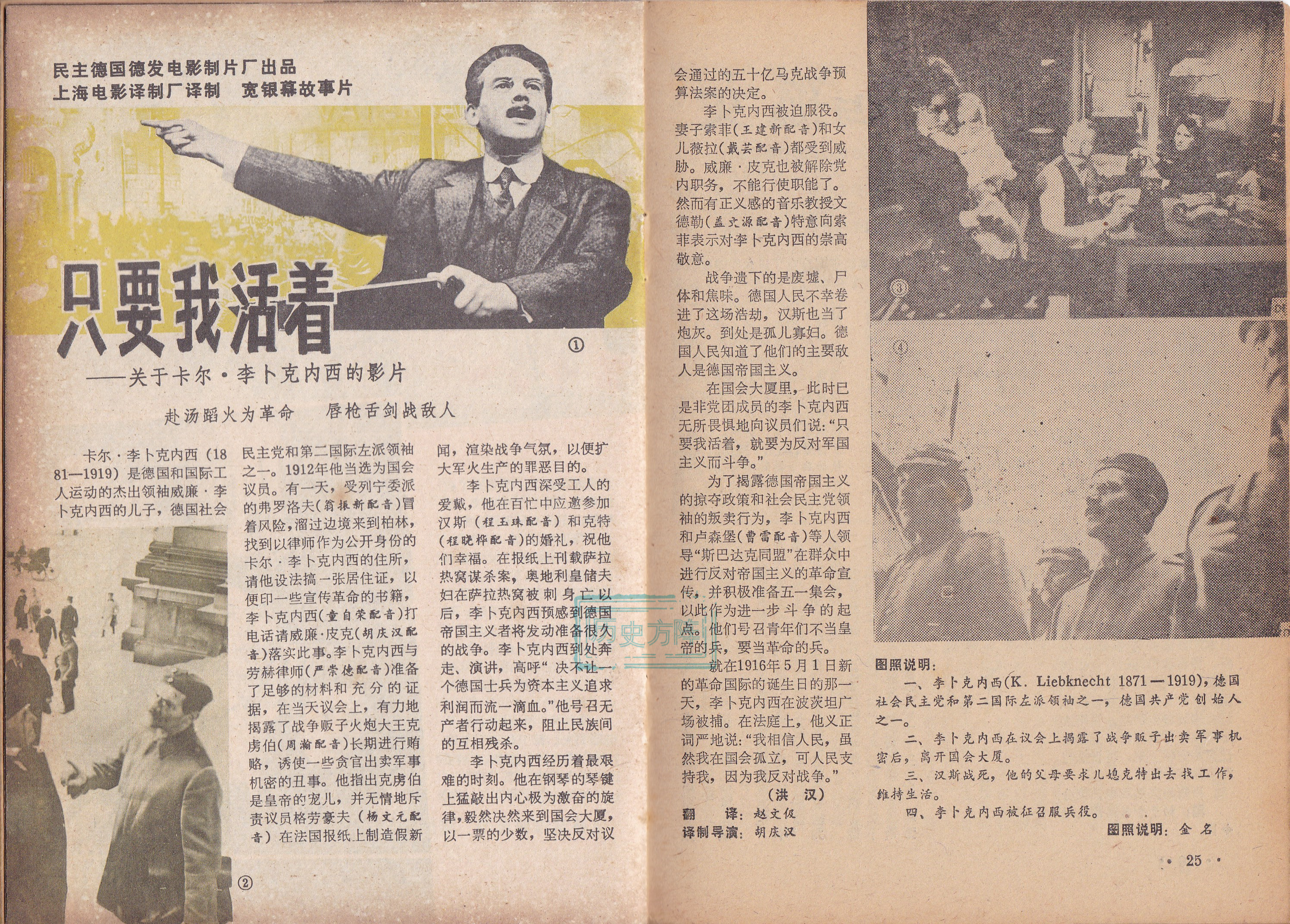 民族德国德发电影制片出品《只要我活着》,德国社会主义政治家卡尔·李卜克内西的传记以及他对第一次世界大战的战斗。