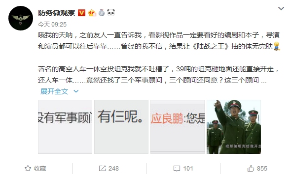 “防务微观察”对《陆战之王》做了以下吐槽: