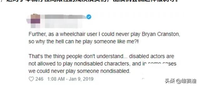因为他们感觉,自己作为残疾人却不能出演残疾角色?本来他们的机会就不多,连仅剩的饰演残疾人的机会都被抢走了。