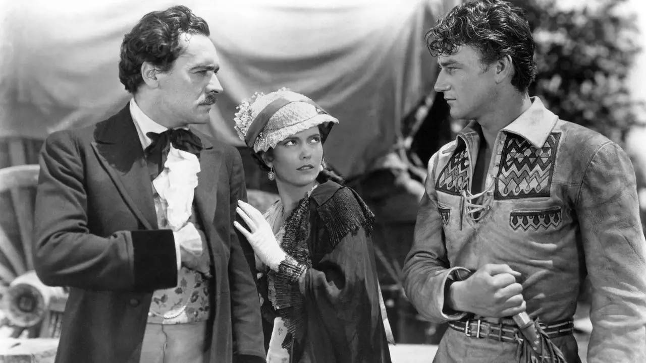 在西部片之王约翰·韦恩(john wayne)的演艺生涯中有三道坎,raoul walsh导演的《大追踪》(the big trail)就是第一个。在那之前他还只是在fox做替身,跑龙套,这是第一次得到机会主演西部片,同后来我们所熟悉的大腹便便的韦恩不同,此片中的韦恩清秀可人,苗条稚嫩。