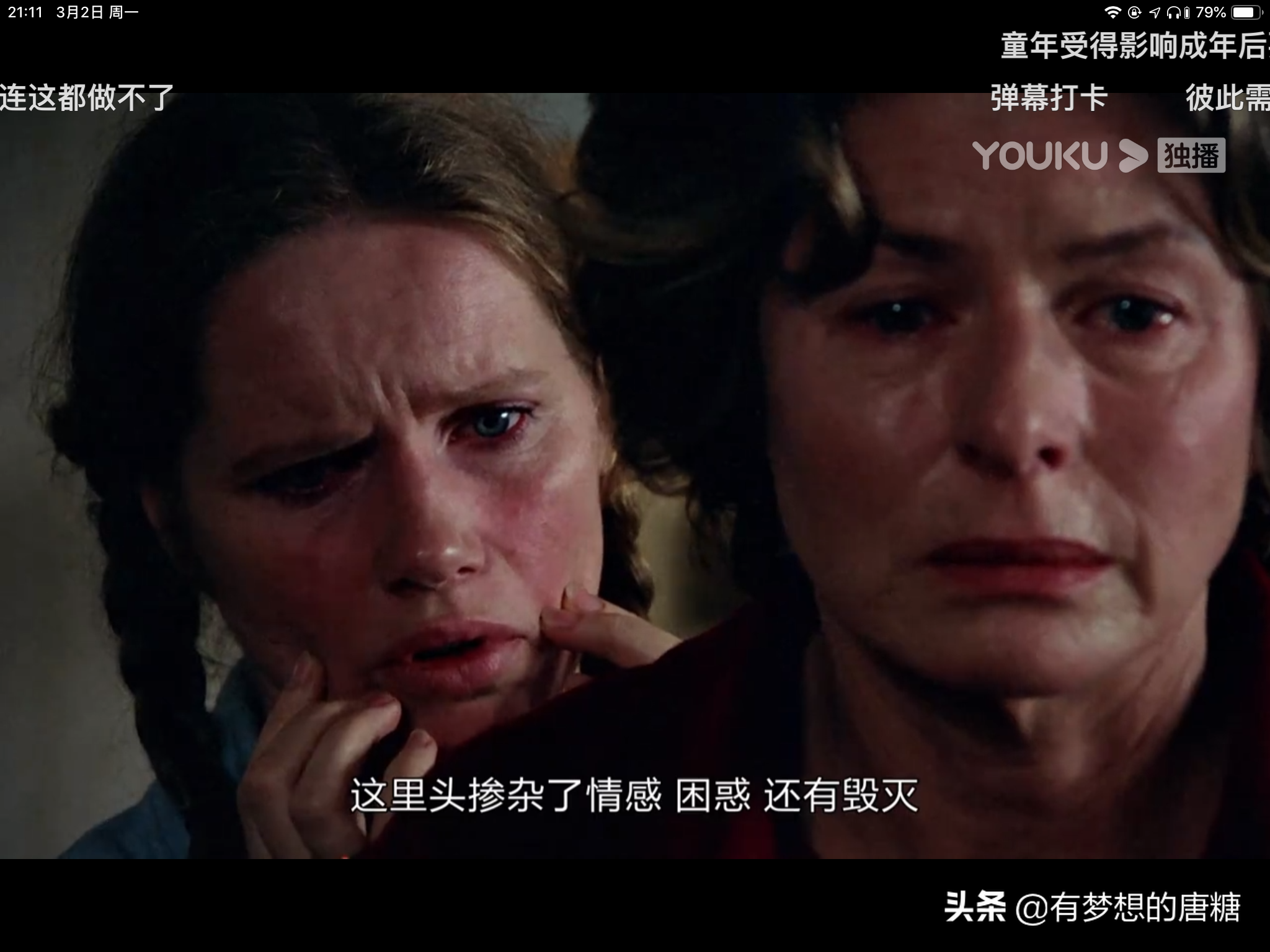 这是典型的母女关系倒置——母亲因为自己缺失的爱,导致了严重的自恋型人格障碍,她不但不能"为母则刚",反而像一个孩子一样肆意索取另外一个真正的孩子的关爱,这会对女儿的心理造成严重的伤害,女儿在成长的过程中无法感受到母爱,反而还要"踮起脚尖",去做超出自己能力范围的事。正因为如此,伊娃才年纪轻轻便形同朽木——因为她的能量,都被母亲耗尽了。