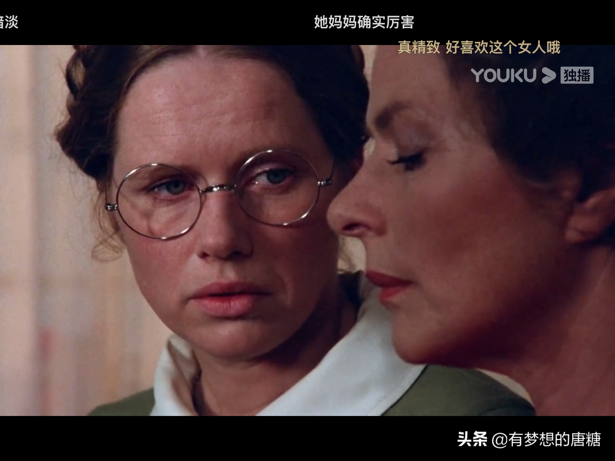 在母亲弹奏的时候,电影画面出现了长时间的特写镜头,一个是眼睛微闭沉浸在肖邦独奏中的母亲,精致华丽,另一个是坐在母亲身旁敏感、紧张、困惑、无措的女儿,一推到底的特写镜头,配合别扭压抑的钢琴曲,勾勒出母女之间难以逾越的鸿沟。