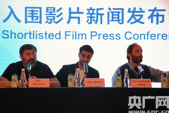 央广网北京4月20日消息(记者 张文静)第六届北京国际电影节天坛奖格鲁吉亚入围影片《命运女神》于20日在北京国际饭店举行媒体见面会,导演廖万·图特别利泽、男主角扮演者帕塔·因奥里以及男配角扮演者扎扎·马加拉斯季维里共同出席见面会,导演妻子梅里·洛勒基帕妮泽也出现在现场。