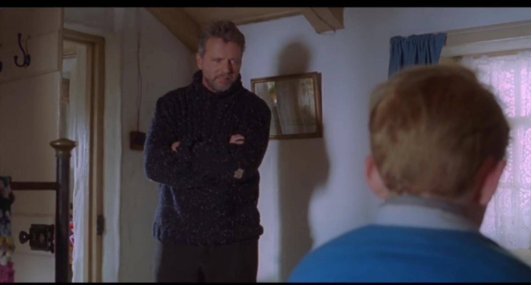 在影片刚开始,亚力克是一个冷冰冰的人物。汤玛斯很害怕他,在喂鸡的时候看到他, 吓到把鸡蛋打碎;和梅尔在雨中漫步的时候,突然看到亚力克,身子一颤,也不敢回家;从这些细节中看到亚力克刚开始外冷的性格和对汤玛斯造成的心理阴影,也从侧面烘托出梅尔对待汤玛斯的温柔与关爱。