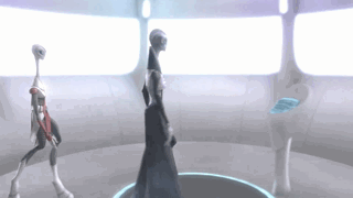 当他把阿纳金和雷克斯上尉叫过来,告诉他们真相的时候,沉重的压力,被注射的药剂,对自身被设计作为阴谋的痛苦,真相的残酷,让他变得歇斯底里。真相马上就要脱口而出的时候。震击部队来了。