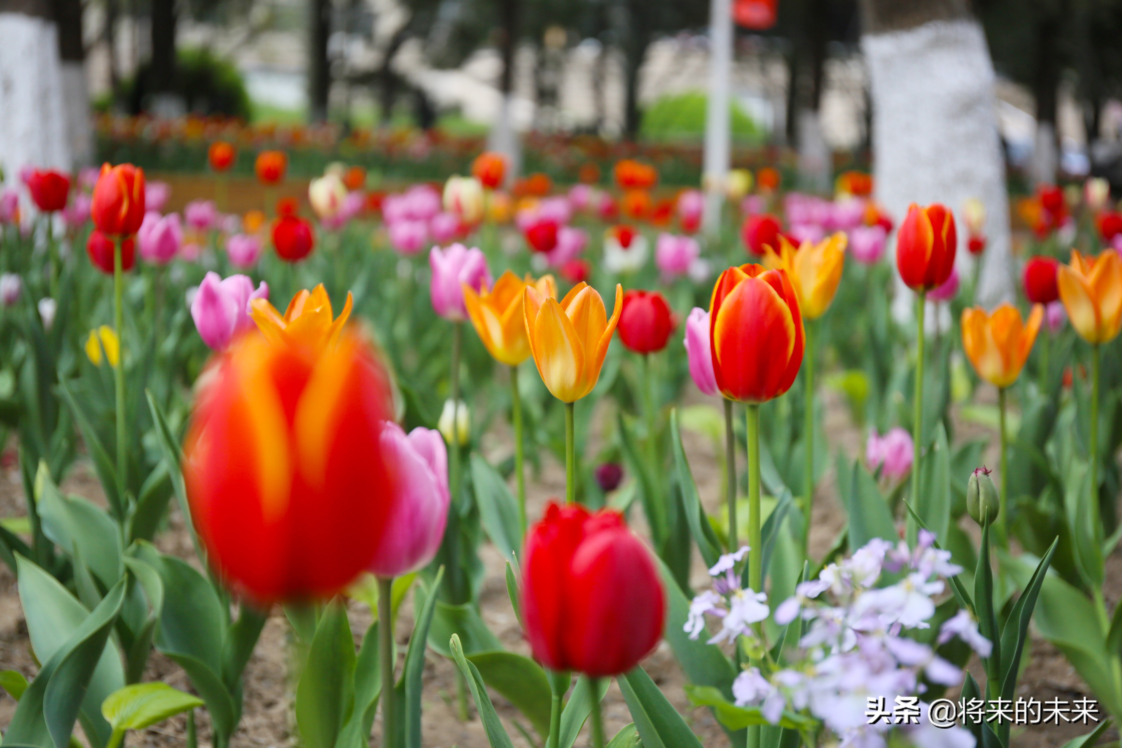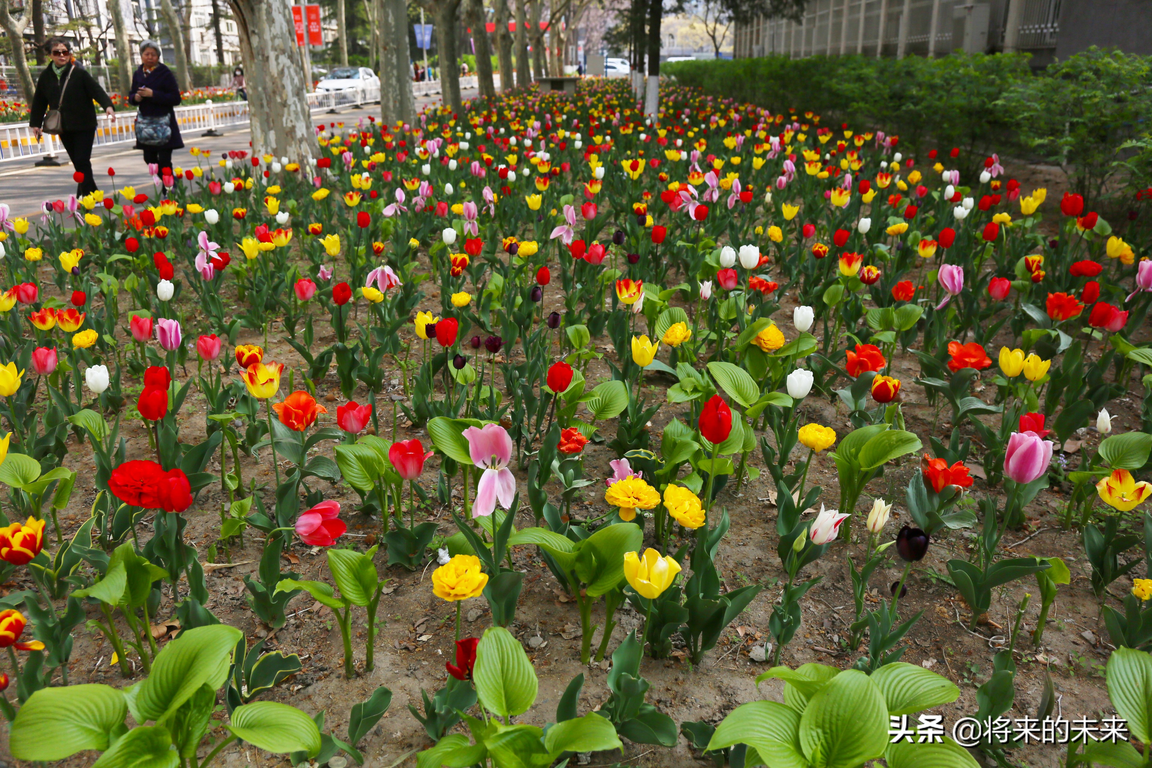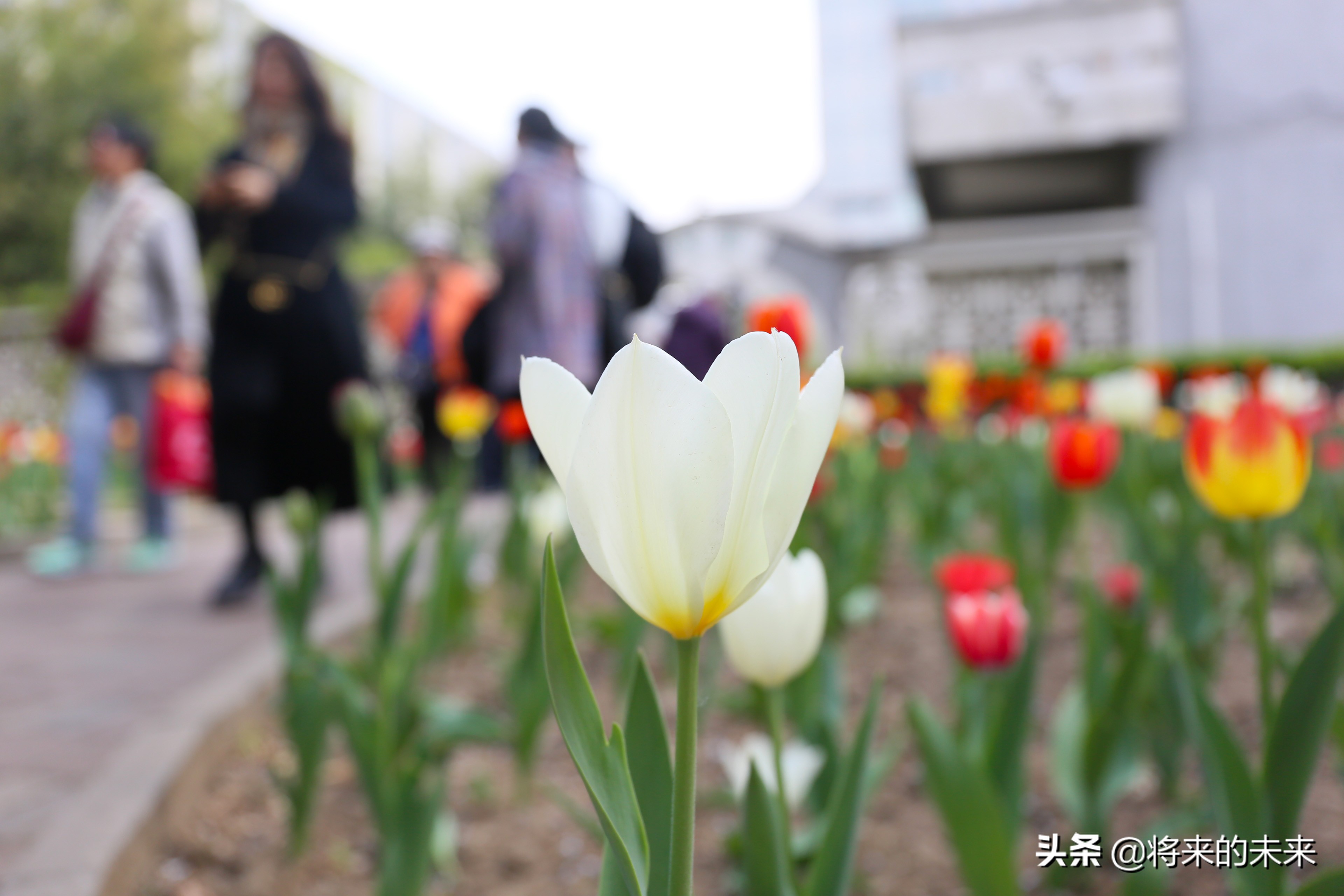 整个校园四处可见盛开的郁金香,数万支把校园变成花海,在校园里空气中被香气弥漫着,让师生很是自豪,尤其看到自己栽种的盛开着花朵。