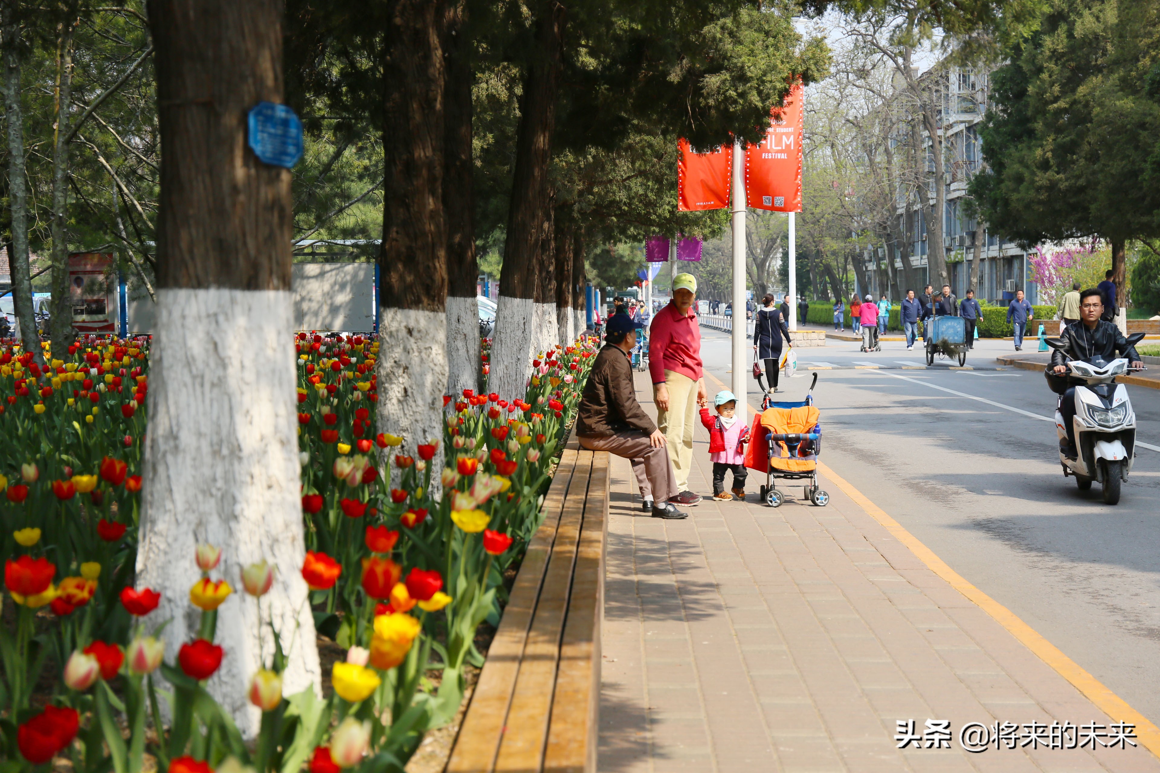 北京师范大学校园郁金香齐绽放,园内慕名而来的游客络绎不绝,争相拍照留念。成北京“最美校园”据悉院内郁金香为本校学生所种植,在绿化校园的同时给同学带来了春天的气息。