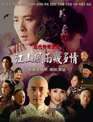 闲时浏览网页,无意中发现了这部名为《江山风雨几多情》的电视剧,该剧拍摄于2011年,从光绪二十年一直延续到五四运动,从一个家族两父子的命运入手,描述了戊戌变法、宣统退位、袁世凯登基、孙中山建立同盟会等诸多事件。是一部典型的年代传奇剧,本剧演员阵容可观,香港影星杨恭如,李修贤,内地演员保剑锋、赵恒煊、宋佳、王思懿、张曦文、王铭等参加拍摄。个人感觉是一部可看性很强的历史大剧。然而看到它的播出信息后却不免失望之极,该剧显示2012年杀青之后至今未播。